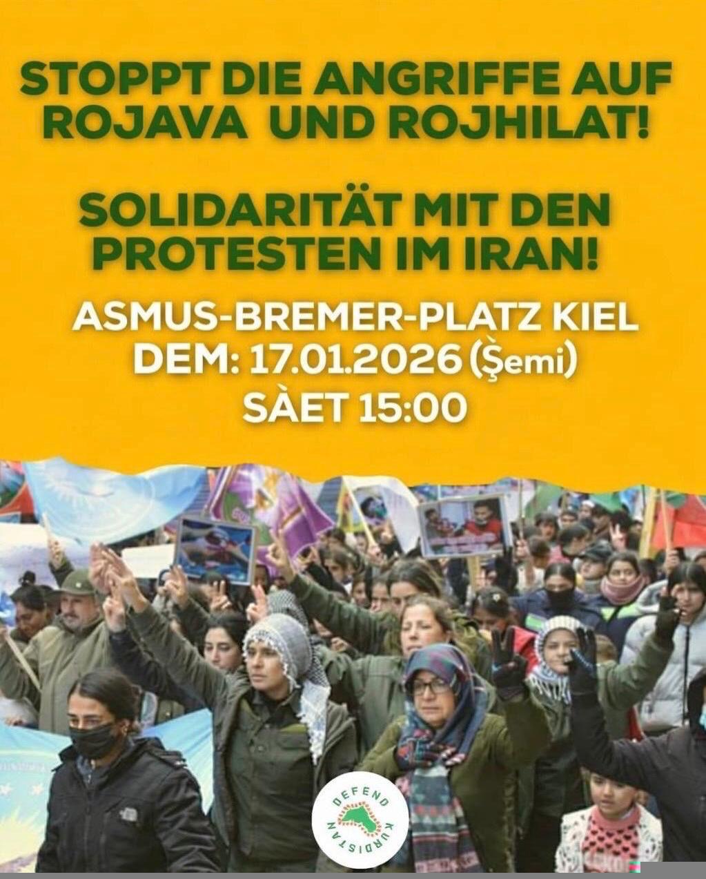 Seit Wochen kommt es im Iran zu landesweiten Massenprotesten gegen Wirtschaftskrise und Diktatur. Der Staat versucht den Aufstand mit brutaler Repression niederzuschlagen, die bisher Tausenden das Leben gekostet hat. Währenddessen greift die von der Türkei gestützte und von der BRD hofierte HTS-Übergangsregierung mit verbündeten dschihadistischen Milizen, zunächst in Aleppo, nun in Rojava, die demokratische Selbstverwaltung in Nordostsyrien an. Gleichzeitig droht ein militärischer Angriff der USA auf den Iran und damit eine weitere Destabilisierung und kriegerische Eskalation im Mittleren Osten. Wir stehen an der Seite der demokratischen und revolutionären Bewegungen in Kurdistan, im Iran und in Syrien, die gegen jede Tyrannei und für Selbstbestimmung kämpfen.