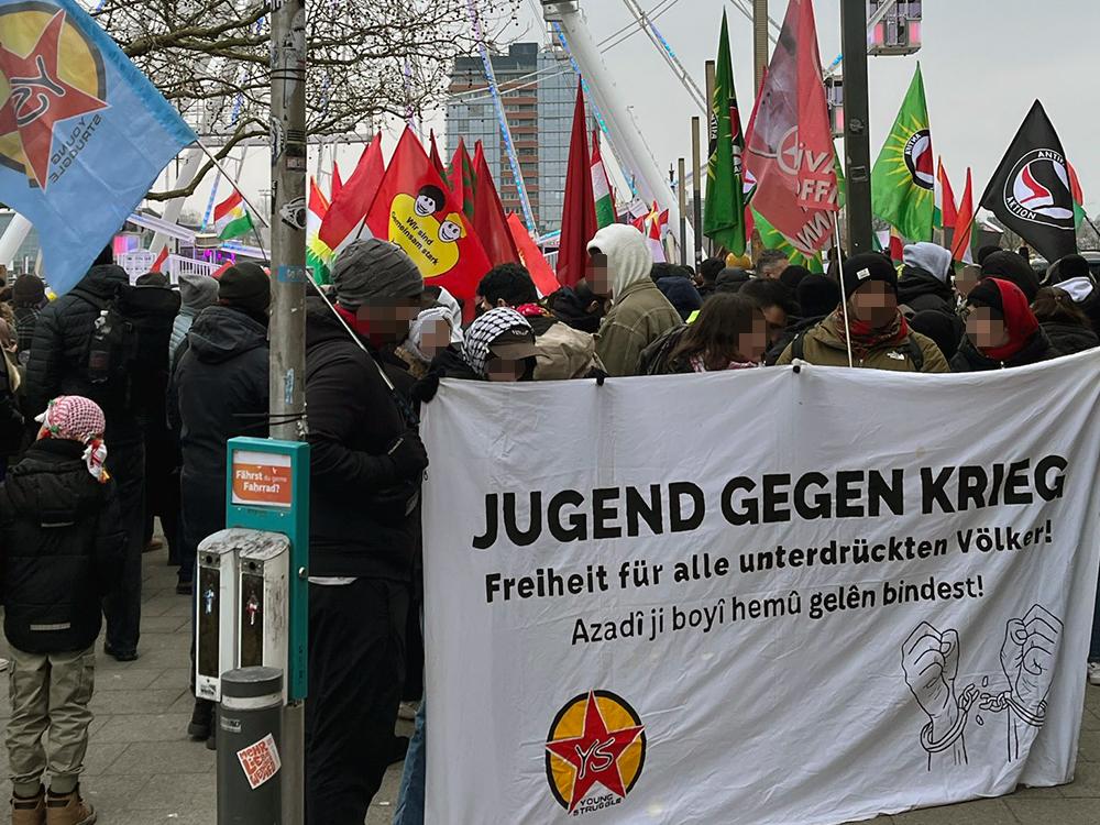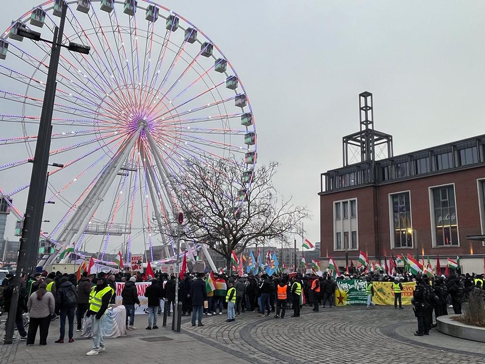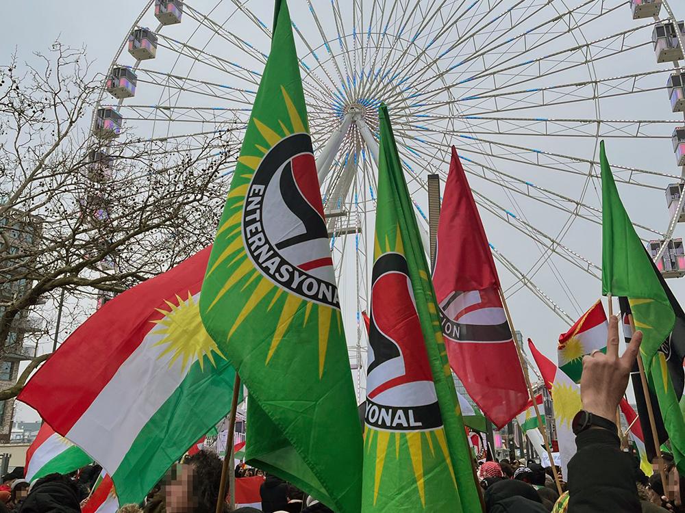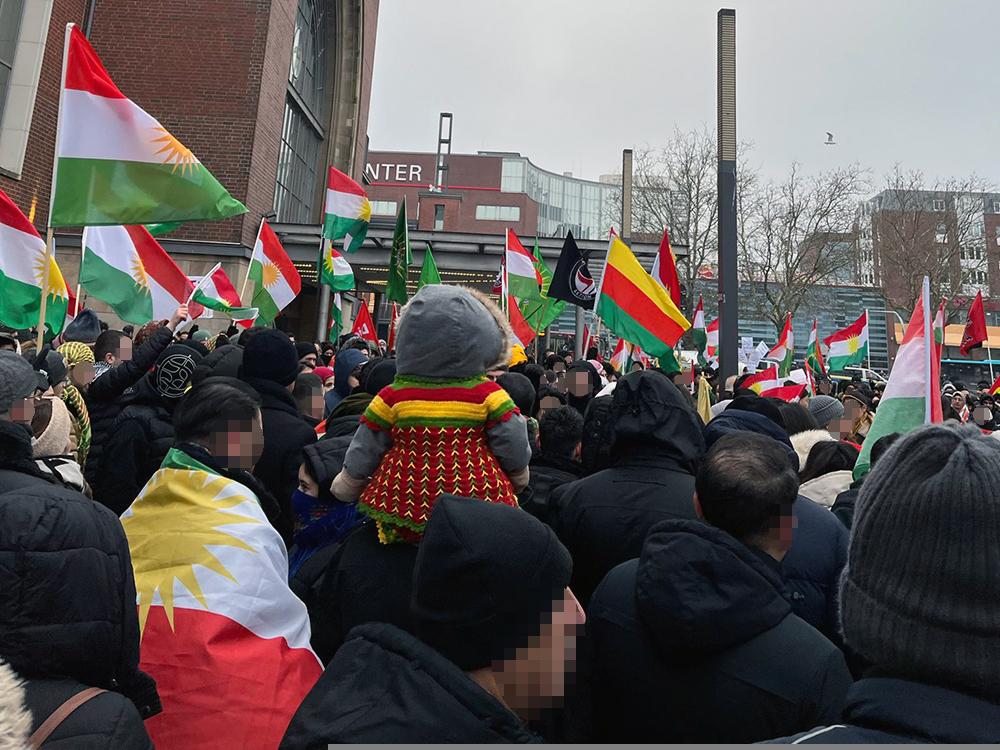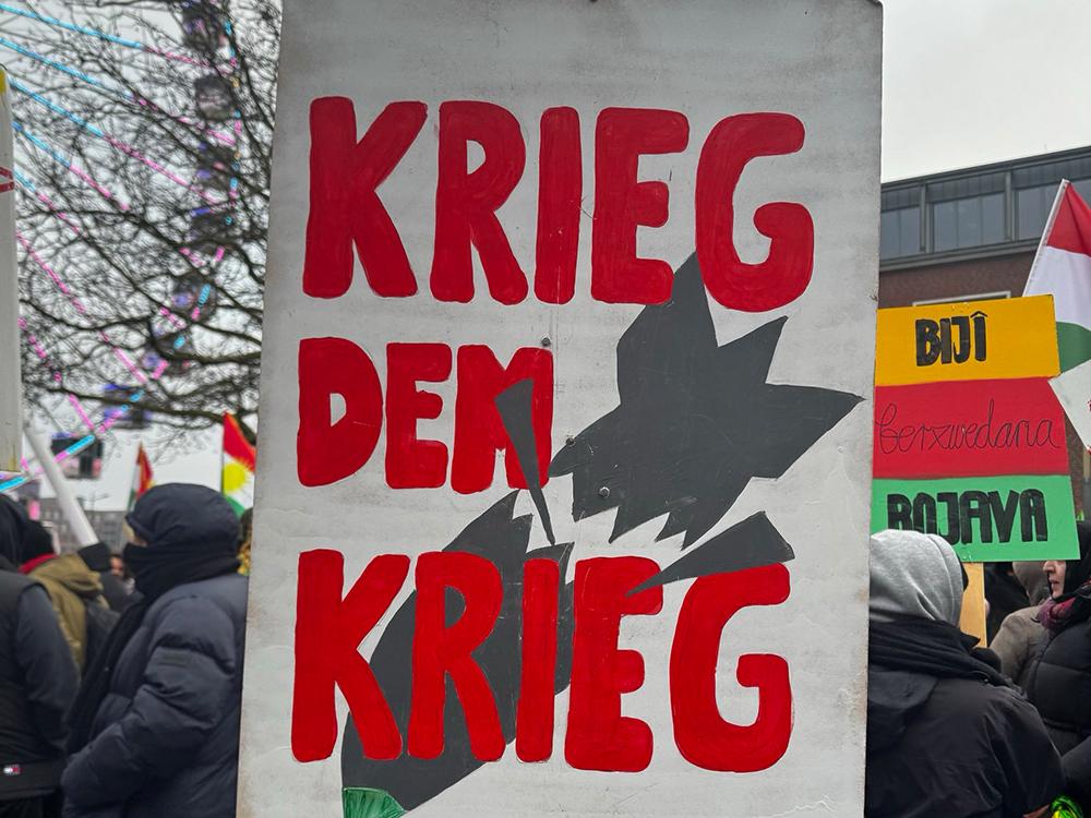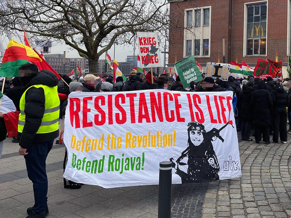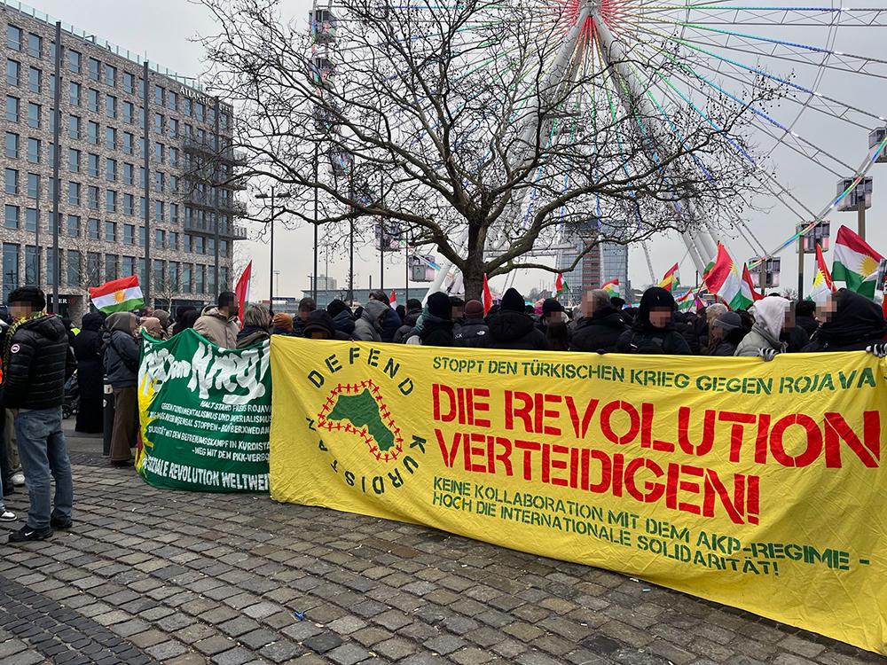Nachdem es in Kiel in dieser Woche bereits täglich zu Solidaritätsaktionen mit den Verteidiger:innen und der Bevölkerung der Demokratischen Selbstverwaltung Nordostsyrien gekommen war, versammelten sich am Samstagnachmittag (24.01.2026) wieder über 1000 Menschen zu einer Kundgebung auf Platz der Matrosen. Das Bündnis Defend Kurdistan Kiel hatte eigentlich zu einer Demonstration durch die Innenstadt aufgerufen, was von den Behörden im Vorfeld jedoch kurzfristig per Auflage verboten wurde.